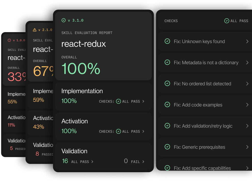 Not all context is equal, and mistakes can mislead agents or overwhelm context windows. Evaluate and optimize your skills by running agents through real world scenarios, and testing changes to avoid regressions over time.